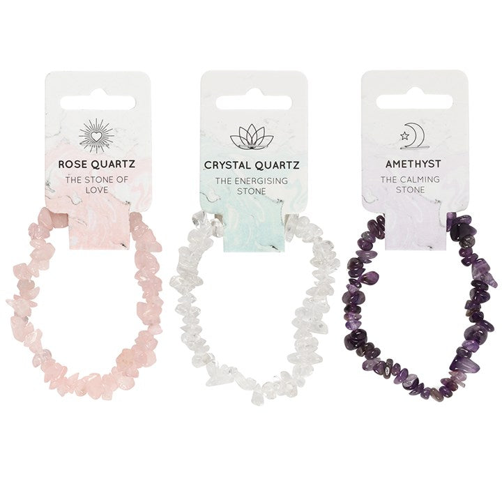 These super cute Semi-precious crystal stretch bracelets features 3 differing styles with unique healing properties.